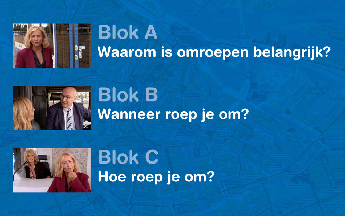 GVB vroeg ons een programma te ontwikkelen om medewerkers van tram en bus beter en bewuster te leren omroepen. Om dit te bereiken maakten we een workshop met Angela Groothuizen, natuurlijk de perfecte presentator en coach, voor alle medewerkers. Samen met Leonie Jansen toont ze alle aspecten van het omroepen.