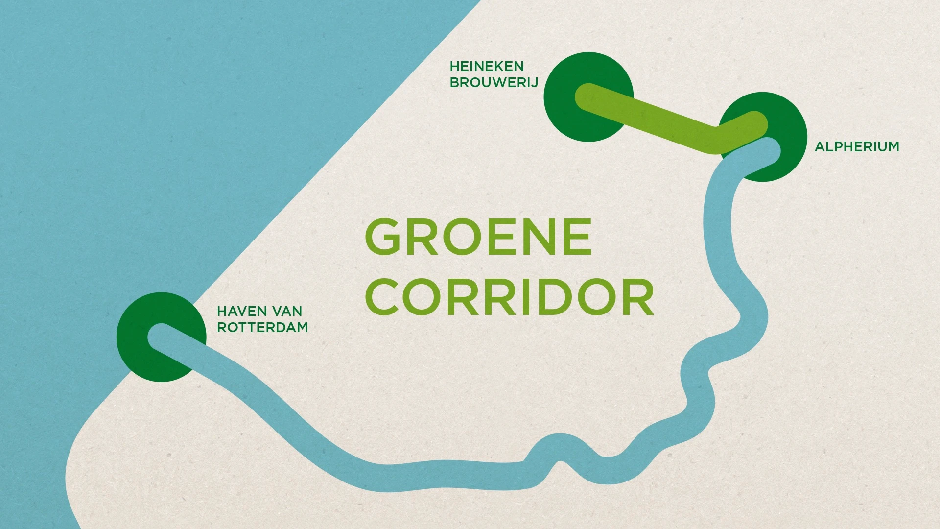 De Groene Corridor is een klimaatneutrale route voor goederenvervoer tussen de HEINEKEN brouwerij in Zoeterwoude en de haven van Rotterdam. Het bestaat uit een aantal projecten, waar 20 verschillende partners in samenwerken. Het is een onderdeel van het Groene Cirkels programma. Ons is gevraagd om dit ingewikkelde verhaal in een korte animatie te vertellen.