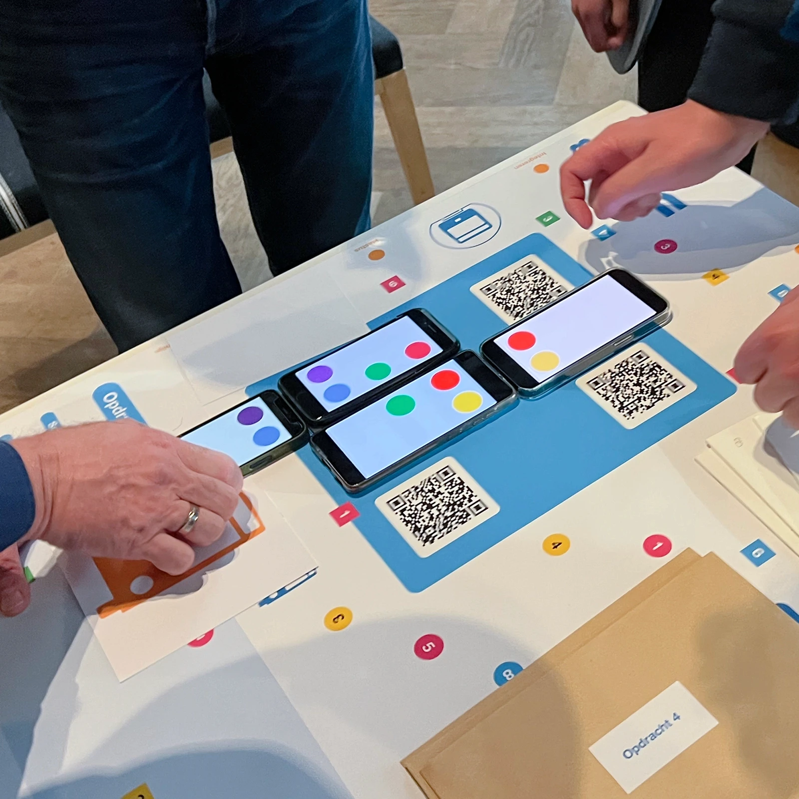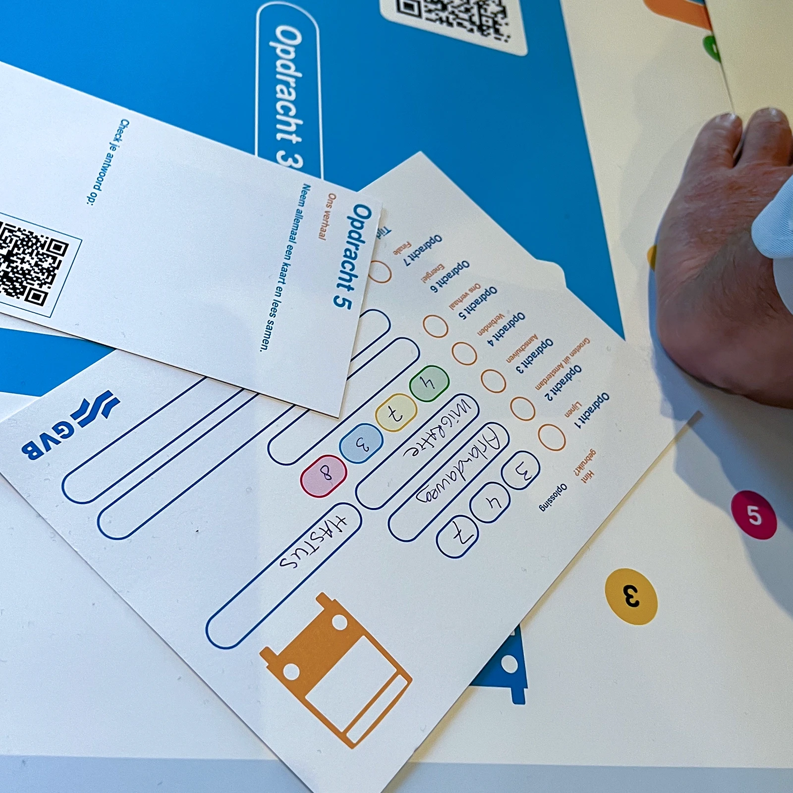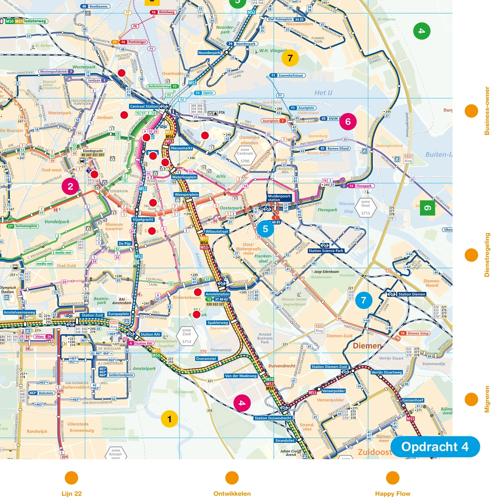 Inzichten rond samenwerking en onderlinge afstemming kwamen indringend en vrolijk aan bod in een spel dat we speciaal voor de groep maakten. Het spel werd in groepjes gespeeld rond een speelveld met de GVB lijnenkaart, GVB symboliek en cryptische ’Groeten uit Amsterdam’ ansichtkaarten. De deelnemers waren enthousiast en heel positief; in een nagesprek werden de inzichten samen becommentarieerd.