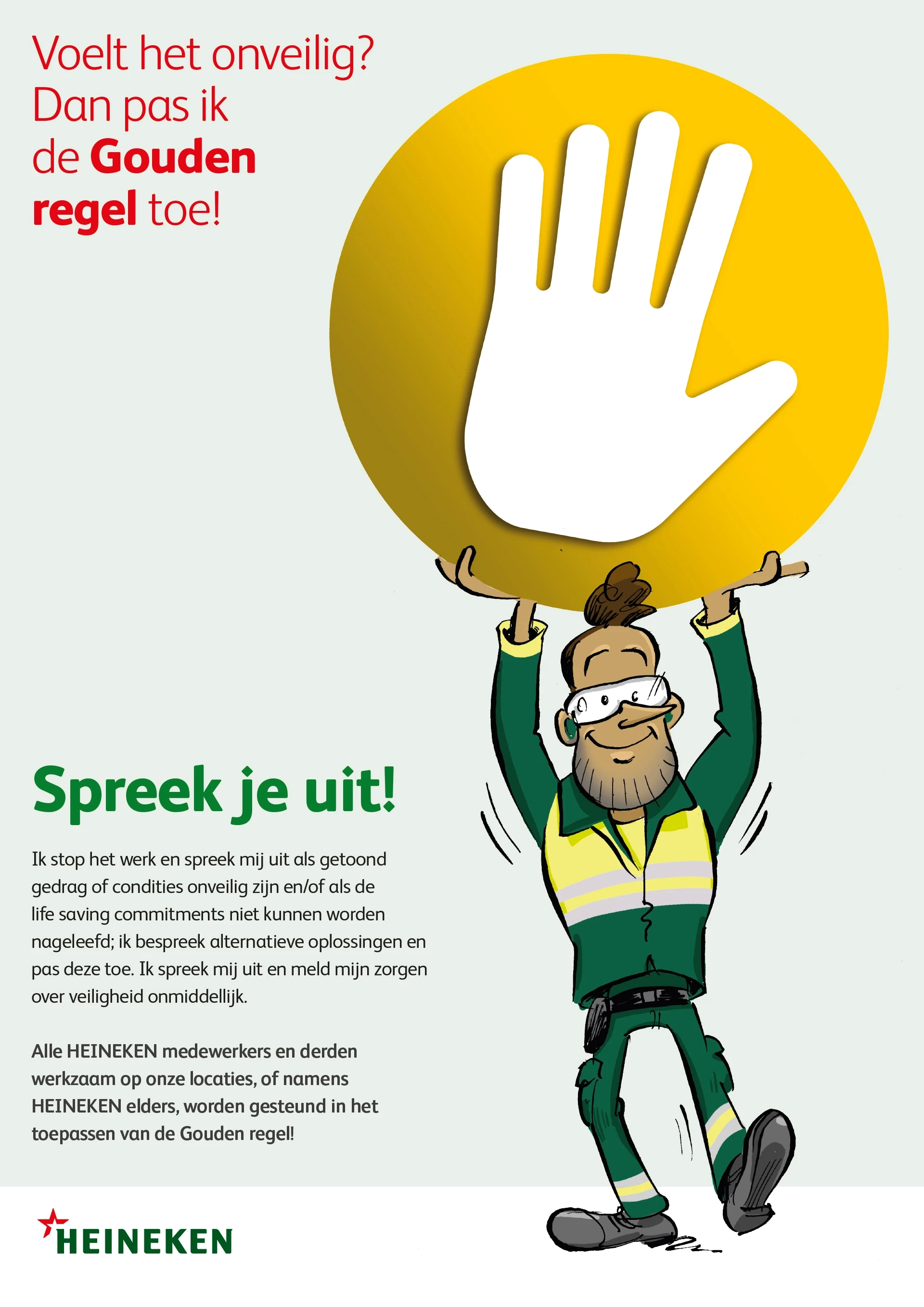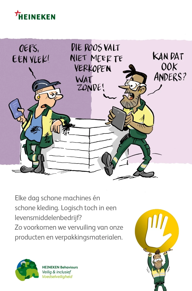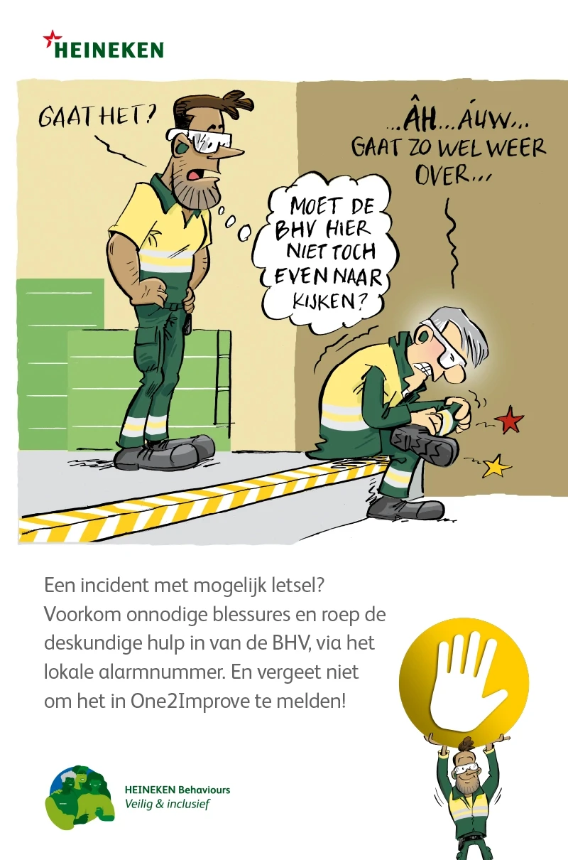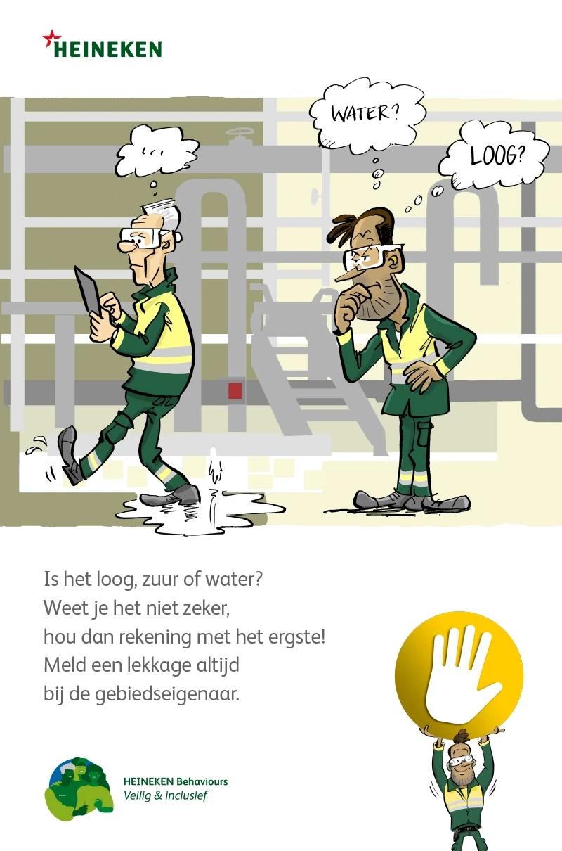 De veiligheidsregels zijn bekend, toch moeten ze steeds opnieuw onder de aandacht worden gebracht. Nieuw bij HEINEKEN is de Gouden regel, waarbij iedereen die een onveilige situatie ziet (of vermoedt) het productieproces mag stilzetten. Dit principe geldt niet alleen voor fysieke veiligheid, maar ook voor mentale veiligheid en digitale veiligheid.