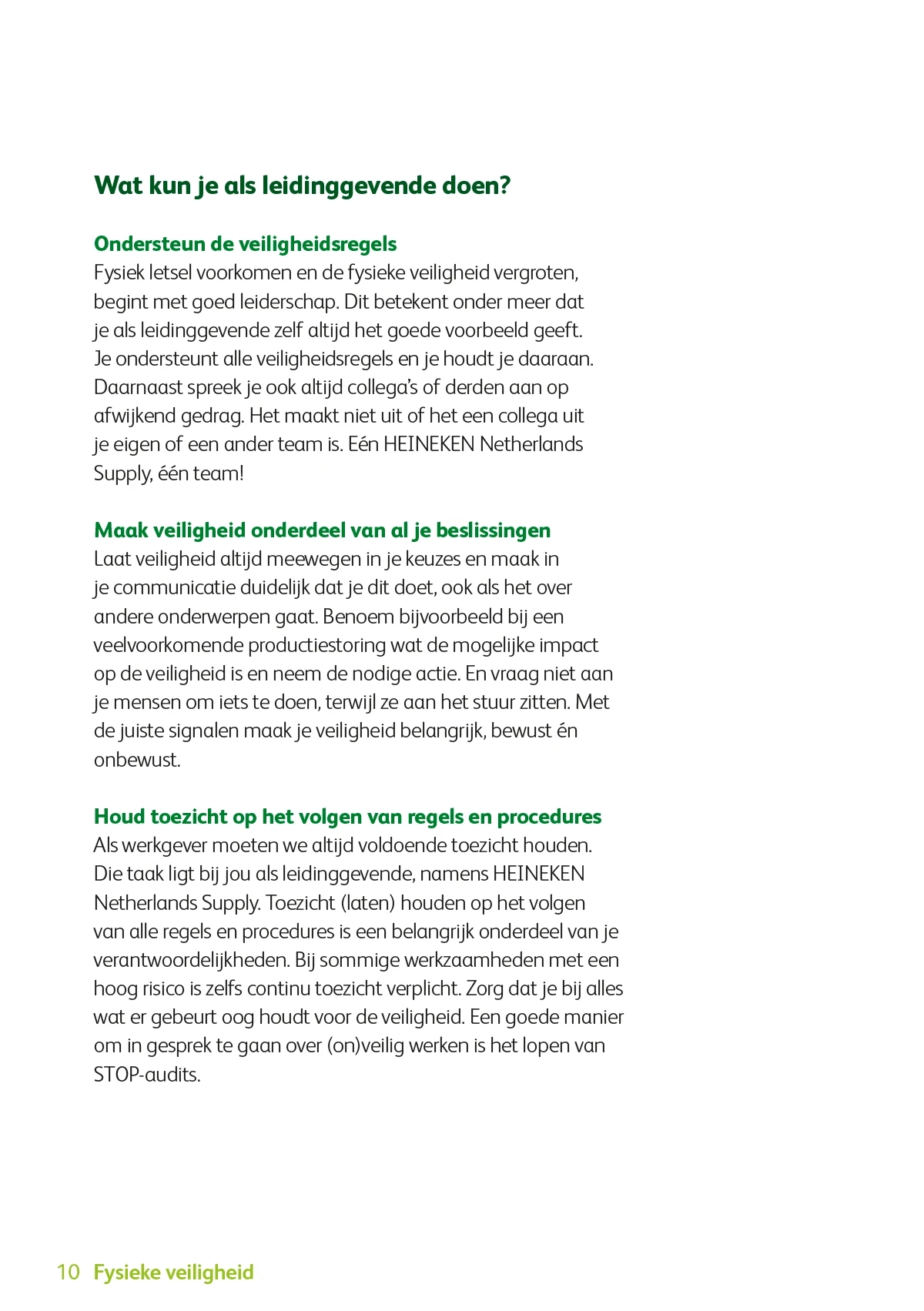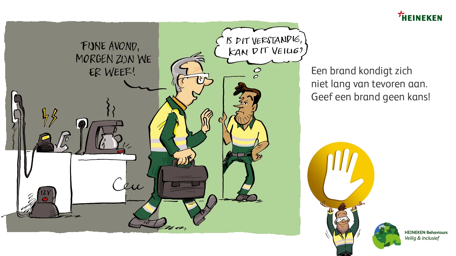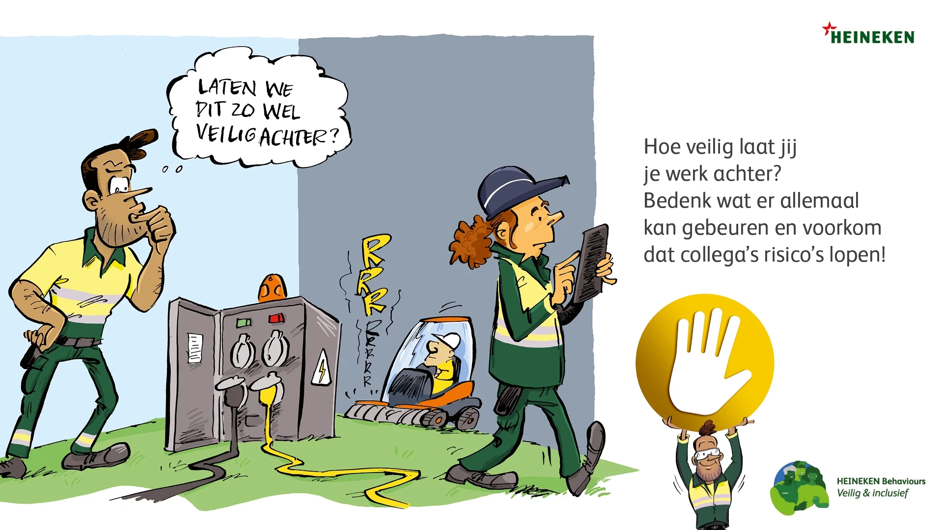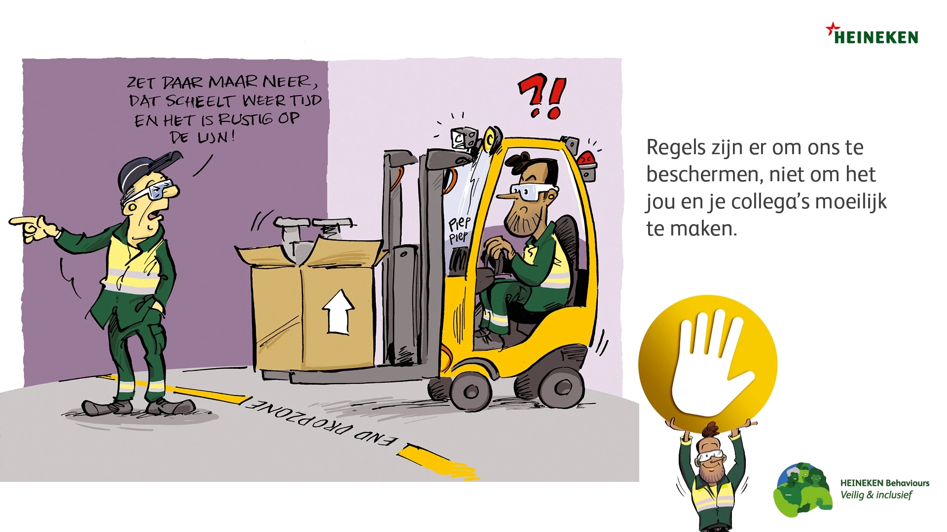 De veiligheidsregels zijn bekend, toch moeten ze steeds opnieuw onder de aandacht worden gebracht. Nieuw bij HEINEKEN is de Gouden regel, waarbij iedereen die een onveilige situatie ziet (of vermoedt) het productieproces mag stilzetten. Dit principe geldt niet alleen voor fysieke veiligheid, maar ook voor mentale veiligheid en digitale veiligheid.