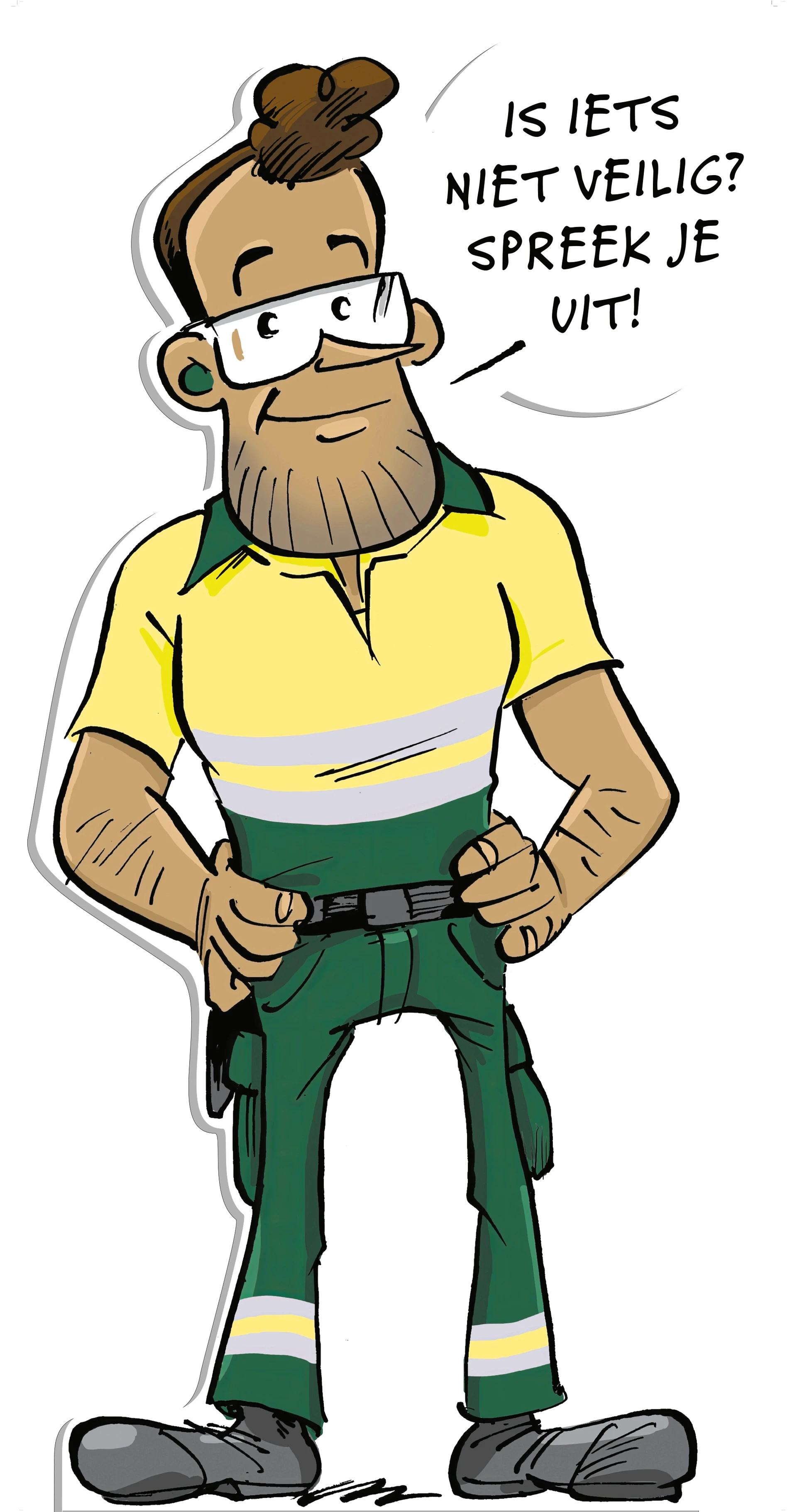 Rond de verschillende onderwerpen worden, in samenwerking met HEINEKEN, situaties bedacht. Die worden uitgewerkt in posters, tent cards, WhatsApp berichten en narrowcasting schermen. Daarnaast worden speciale items gemaakt zoals een manshoge versie van het karakter. Leidinggevenden krijgen een boekje en voorinformatie, zodat ze de campagne goed kunnen begeleiden.