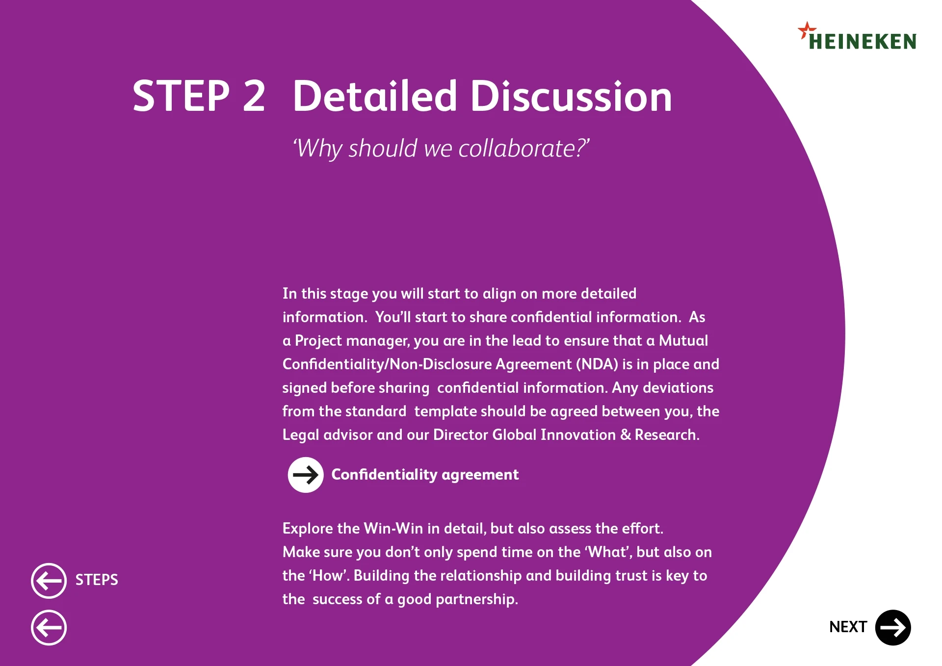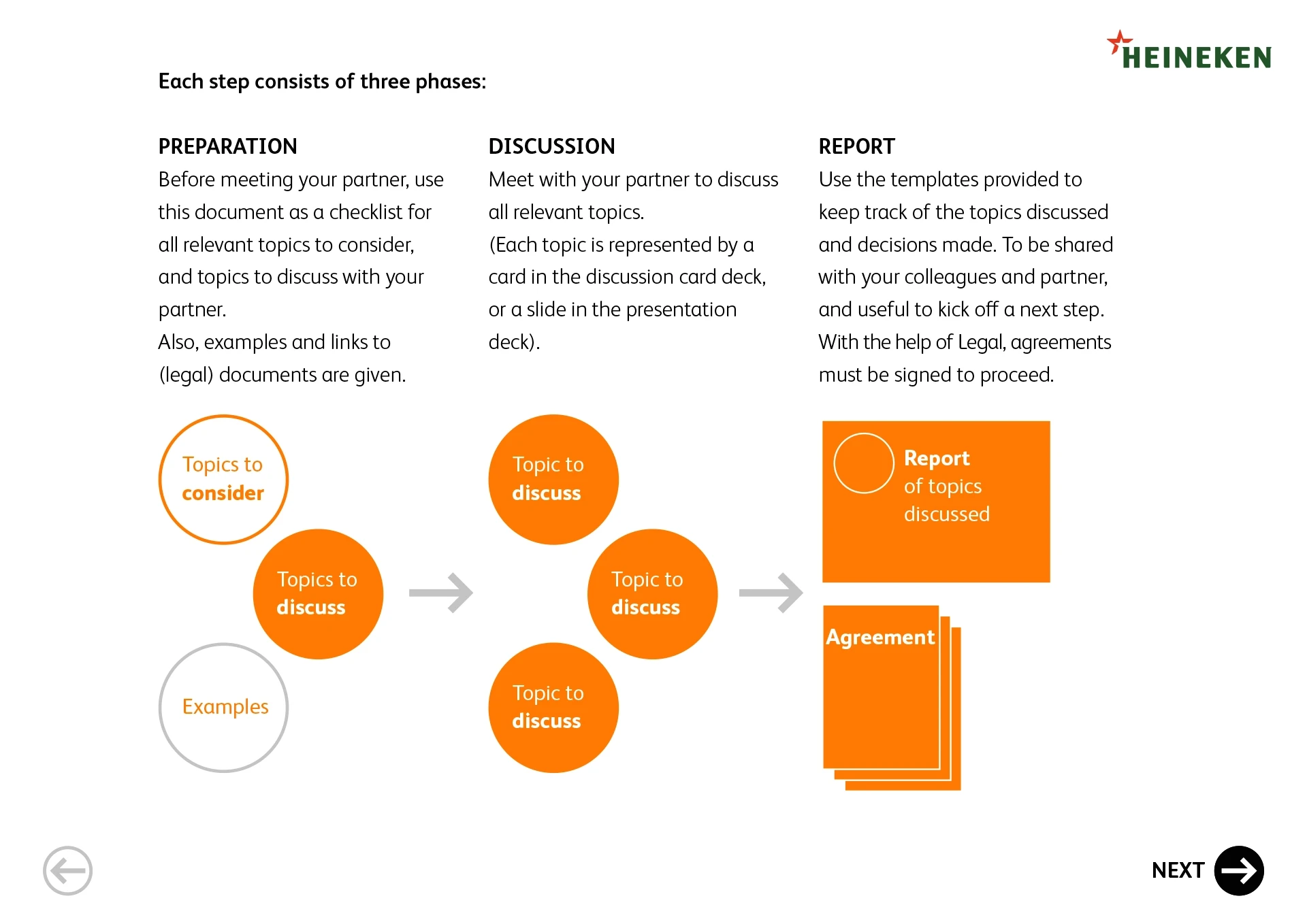 How to start talks with various parties when innovations are the subject matter? Which discussion points should be on the table? How to have a conversation that is fair for both prospective partners, as a basis for a successful collaboration? HEINEKEN Global Innovation & Research asked us to streamline and support this process.