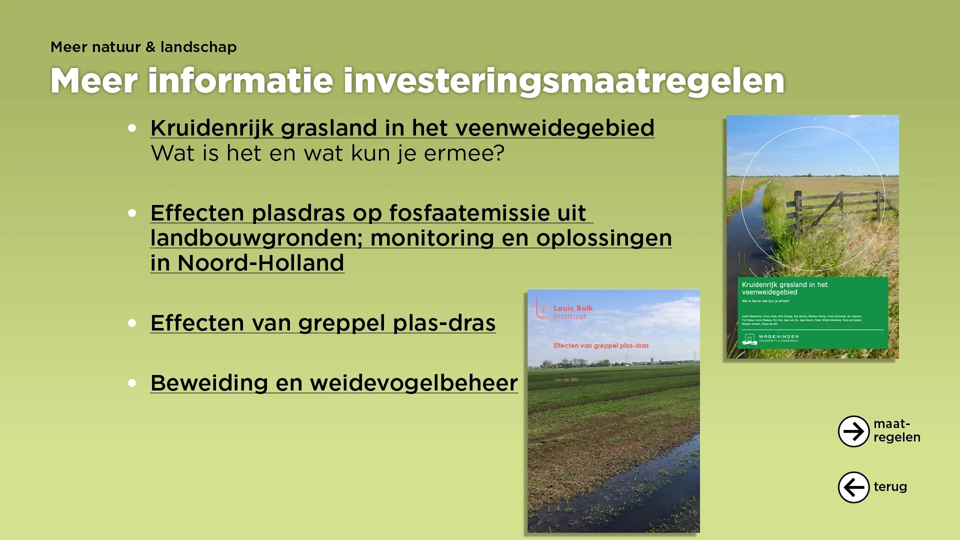 Gedurende enkele jaren maakten we video's over verschillende aspecten van dit project, waaronder een video over het ontstaan van bodemdaling en het gebruik van carbon credits. Over de resultaten van de samenwerking en de verschillende methoden om duurzamer te worden maakten we een boekje – zowel gedrukt als in een uitgebreide interactieve versie.