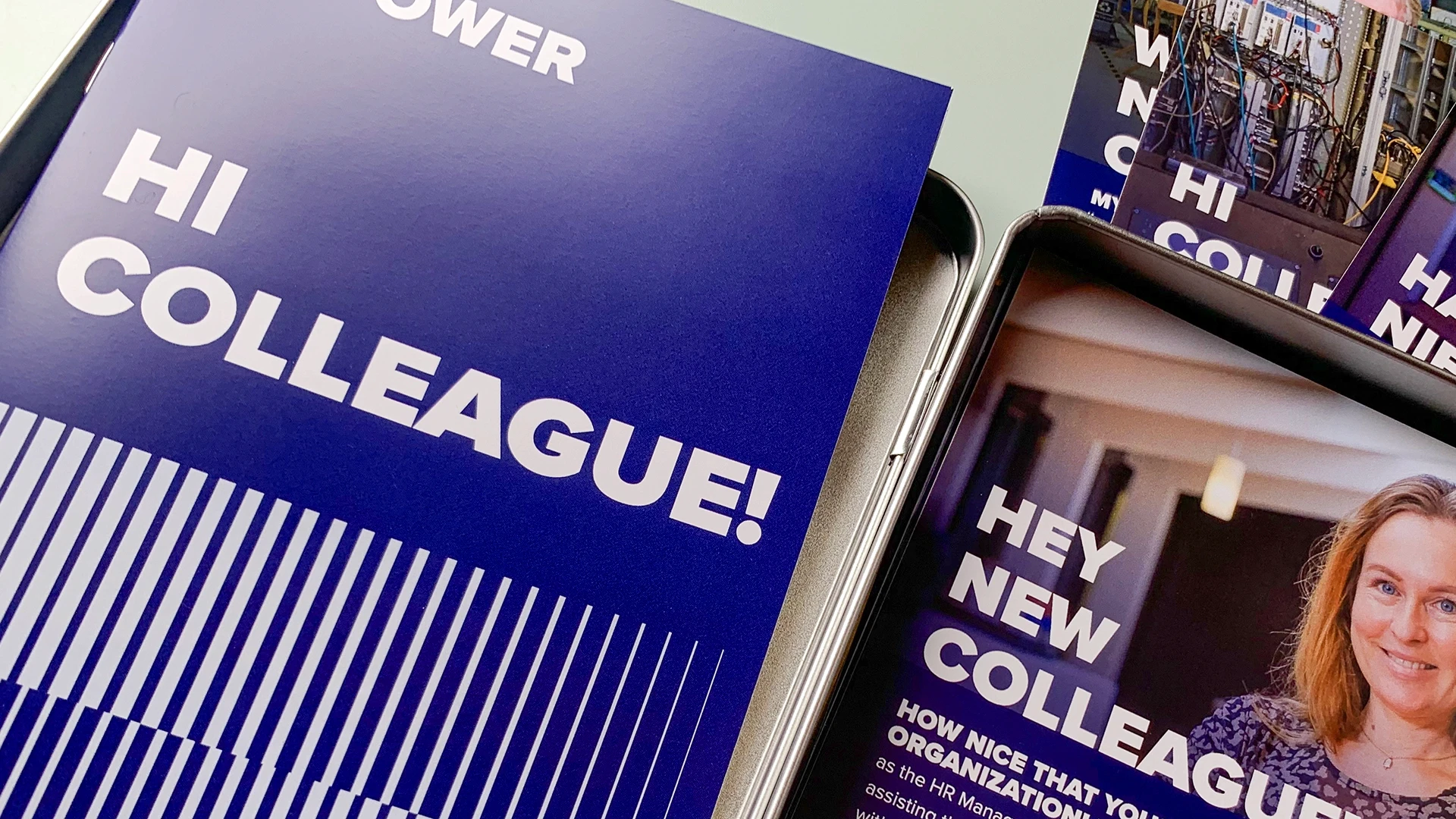 We bedachten HI COLLEGA!-welkomst-kit, met een boekje en persoonlijke uitnodigingen van collega’s uit diverse vestigingen. De kern is om directe, persoonlijke kennismakingen te organiseren en de afstand tussen de locaties te overbruggen.