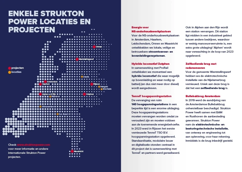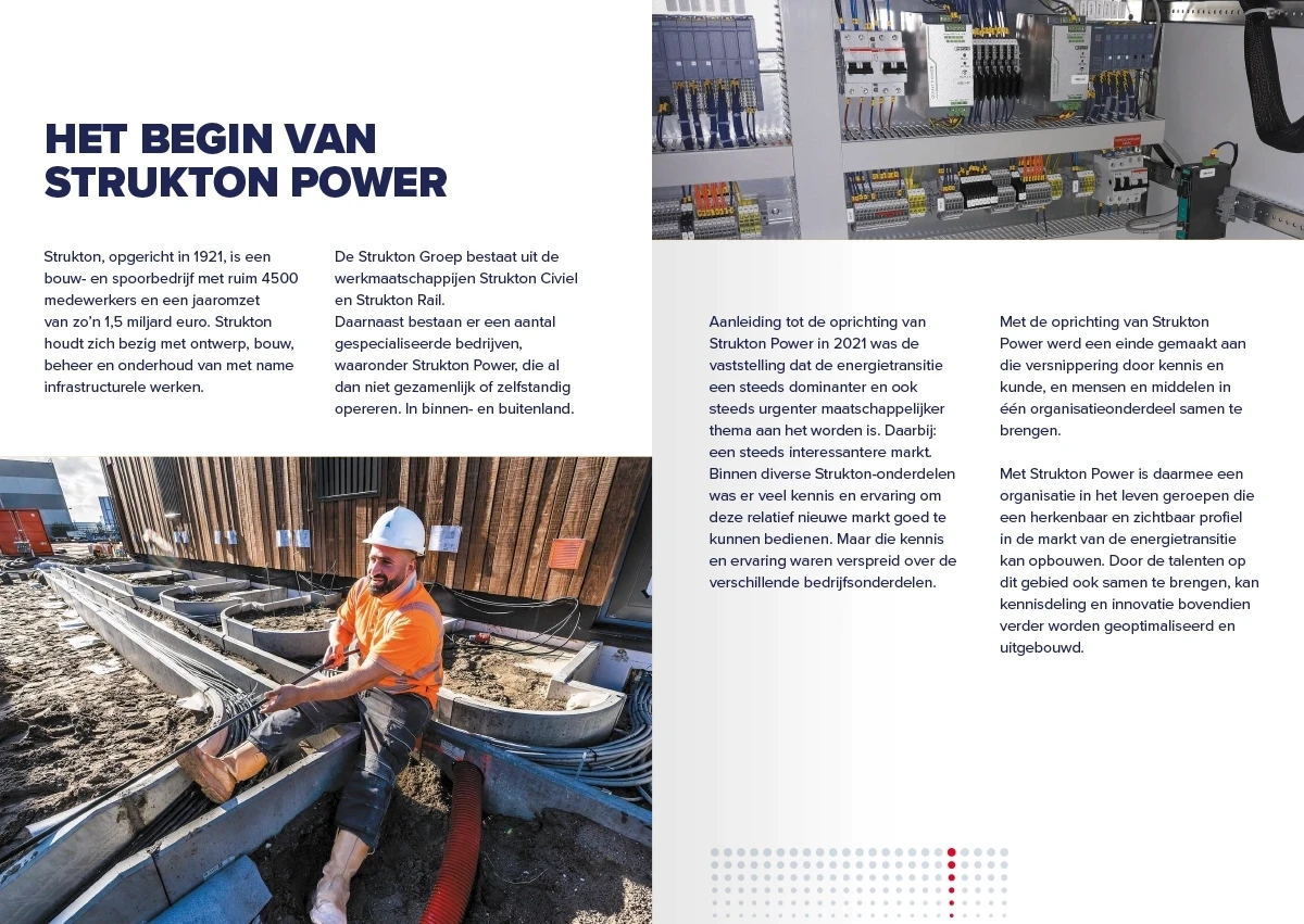 Strukton Power is ontstaan uit een fusie van verschillende bedrijven en telt zes vestigingen in Nederland. Het management wilde nieuwe medewerkers beter inzicht geven in de activiteiten op de andere locaties. Het doel was om de samenwerking tussen de vestigingen te versterken en de doorstroming binnen het bedrijf te bevorderen.
