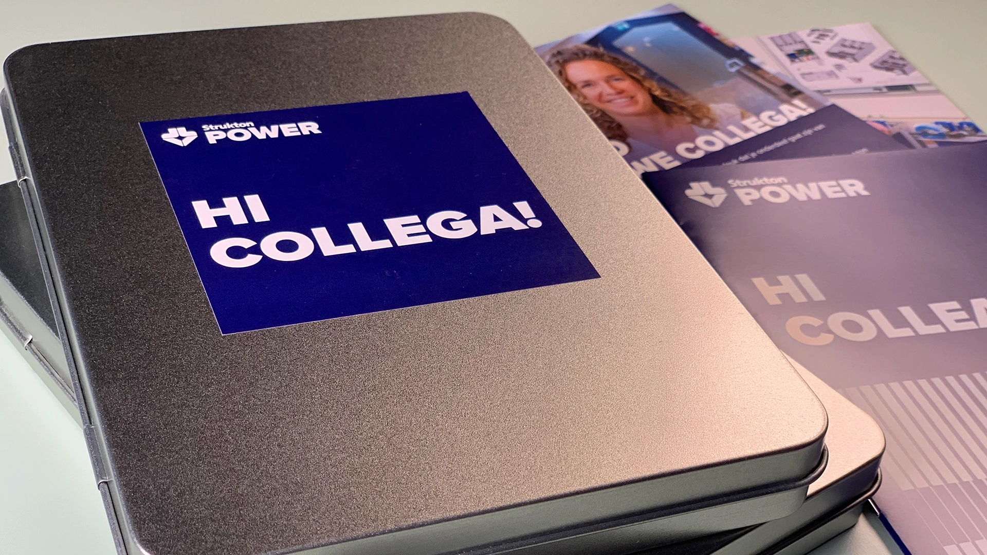 We ontwierpen een fraai doosje met wisselende inhoud. Binnen het hele bedrijf selecteerden we medewerkers die bereid waren om nieuwe collega’s in hun eigen vestiging persoonlijk te verwelkomen en uitleg te geven. Voor elk van deze ambassadeurs maakten we een kaart met een foto en een persoonlijke uitnodiging.